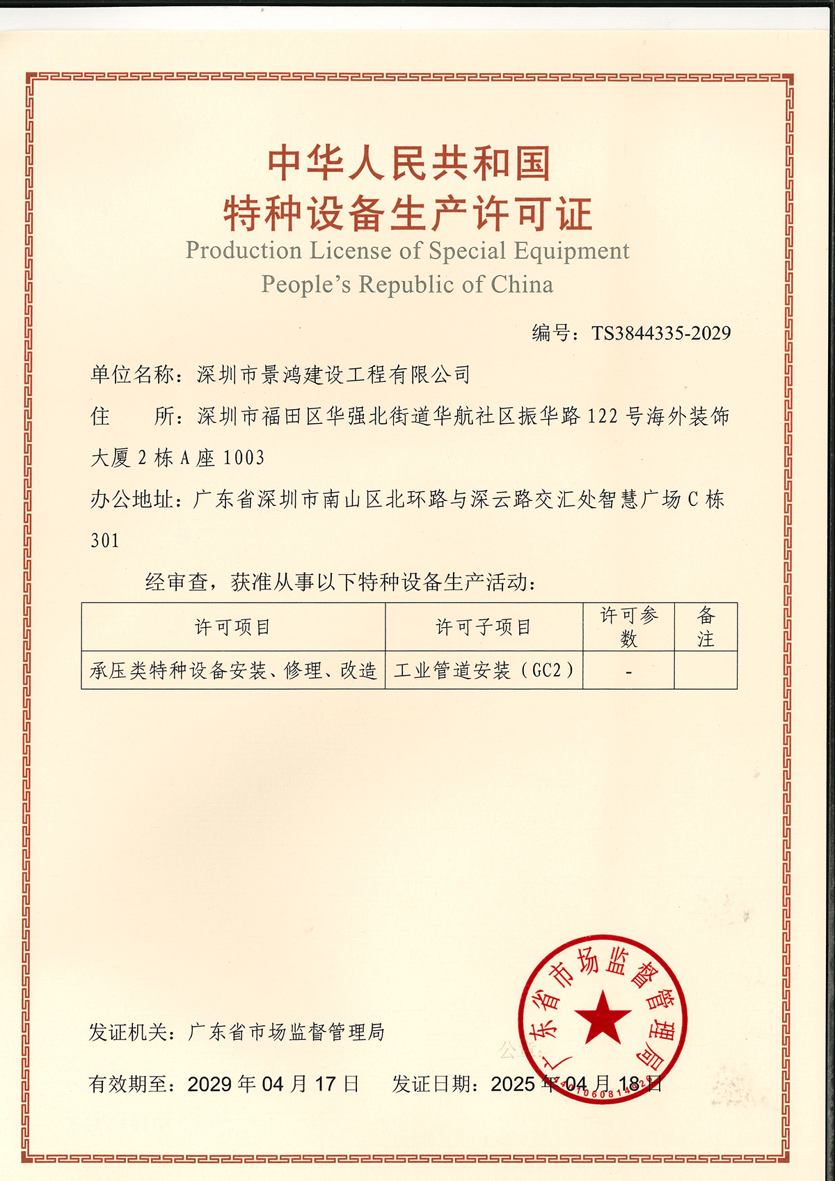 承压类特种设备安装、修理、改造 - 工业管道安装 (GC2)