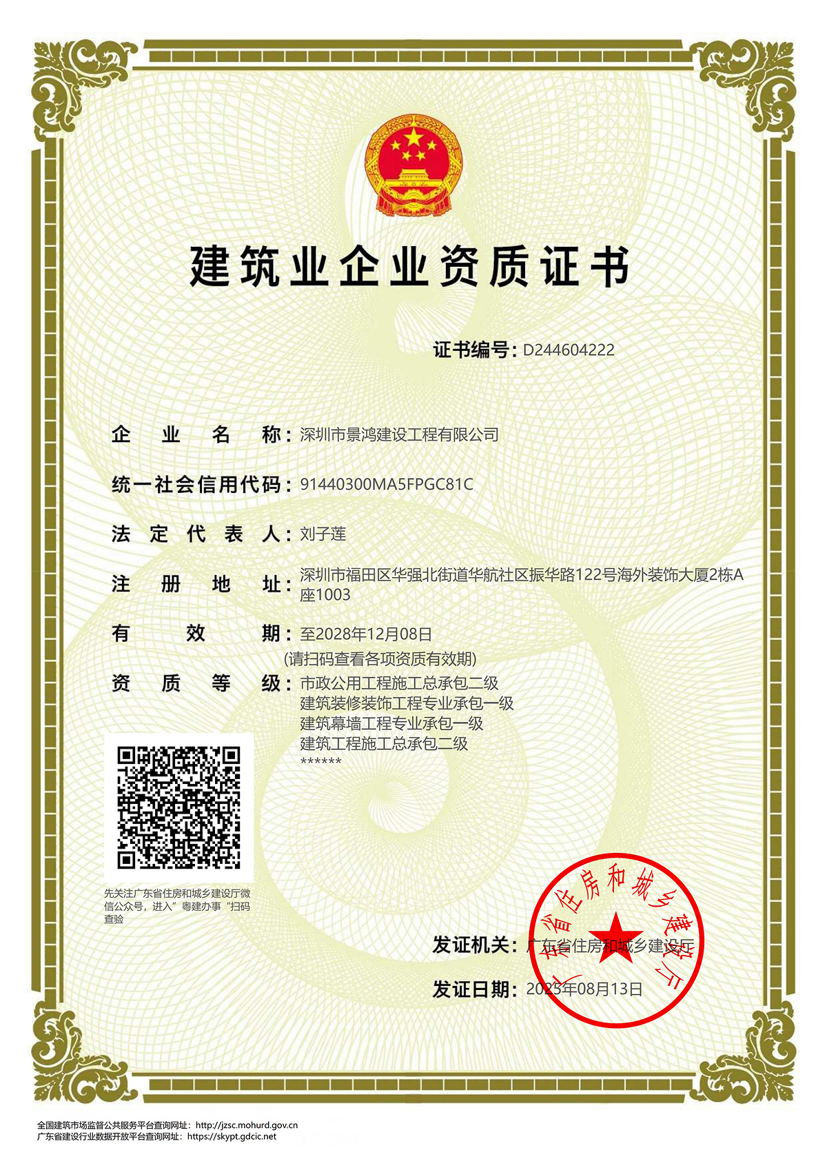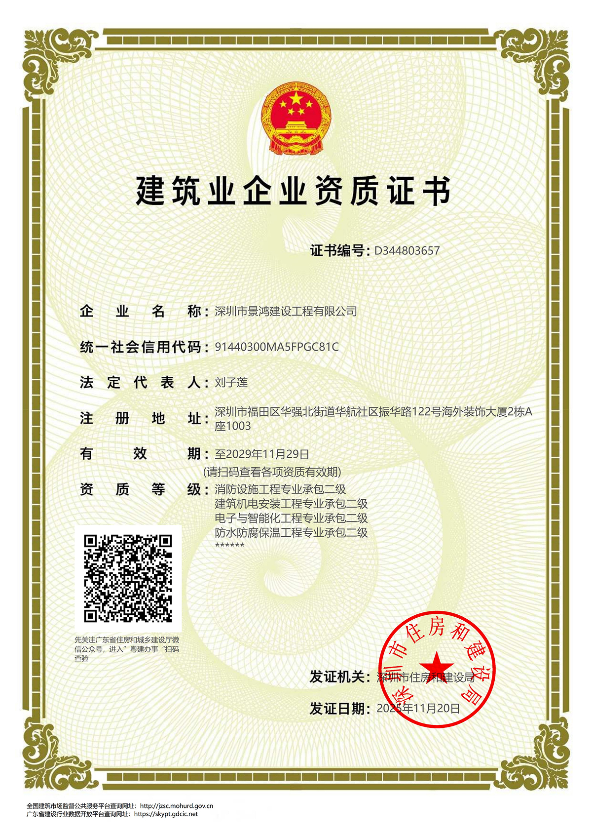 建筑装修装饰工程专业承包一级